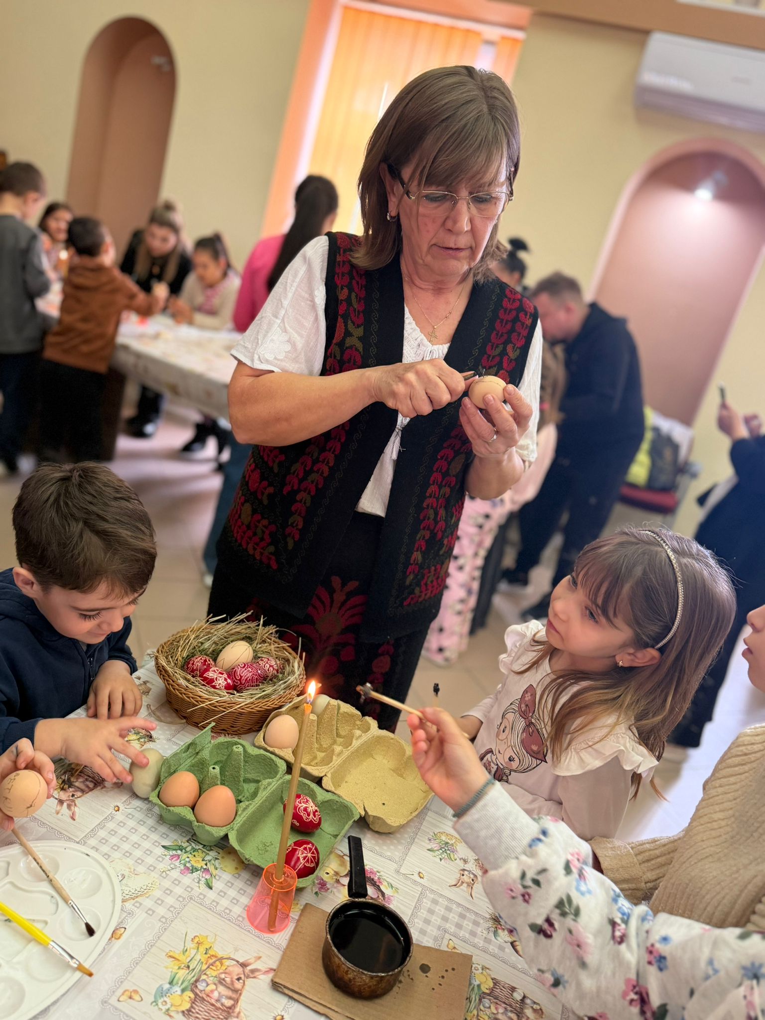 ✨Atelierul de încondeiat ouă desfășurat la Centrul Cultural Ștefănești a fost o experiență deosebită pentru toți participanții. Într-o atmosferă caldă și creativă, copiii au avut ocazia să descopere și să aprofundeze arta tradițională a încondeierii ouălor, sub îndrumarea meșterului popular Liliana Olteanu (Bursuc).